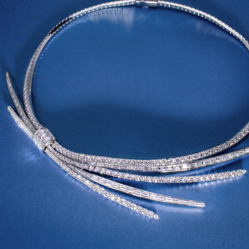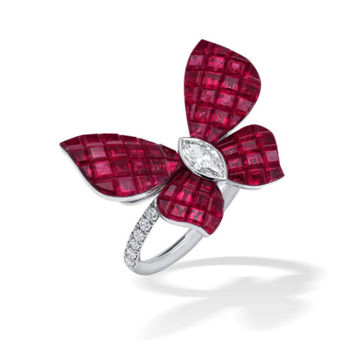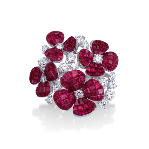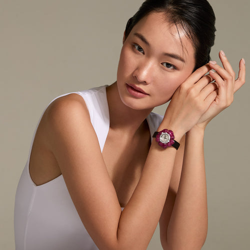 KS:多年来,我们已经完善了宝石和钻石的切割,这将推动未来隐形镶嵌的可能性。你会看到更多 技术上具有挑战性的 作品,这些作品超越了目前隐形镶嵌的行业标准,使用一系列的宝石切割,在不同的水平和角度上镶嵌,重现花朵的 轻盈。我们一直在寻找创新和新的创作方式;这一点永远不会改变。