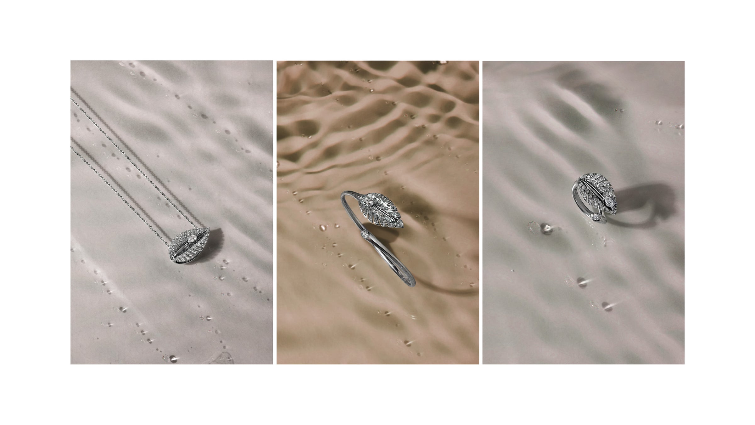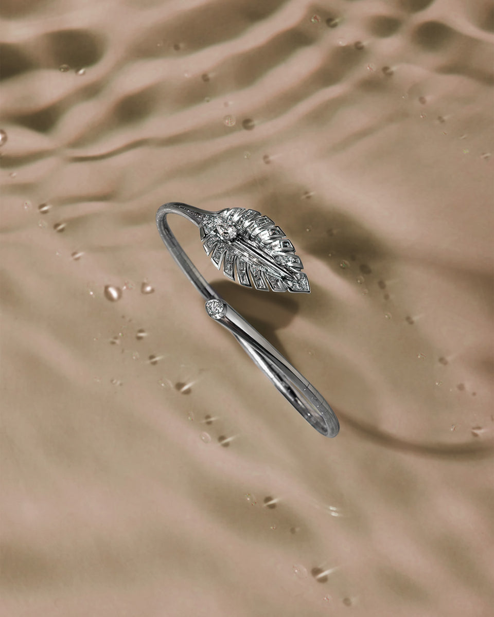 Unsichtbar gefasste, tropfenförmige Diamanten fließen wie winzige Wasserperlen sanft ein Blatt hinab – inspiriert vom natürlichen Spiel der Bewegung. Die Designs dieser Kollektion greifen die anmutige Form der Hosta-Blätter auf, einer aus Japan, Korea und China stammenden Pflanzenfamilie, die für Freundschaft und Hingabe steht. Die Dewdrop-Kollektion verleiht durch ihr spielerisches Funkeln und ihre dynamische Ausstrahlung ein Gefühl von Stärke und Leichtigkeit. Der bewegliche Diamant fängt das Licht wie ein Morgentautropfen ein – ein subtiler Glanzmoment, der Ihrem Stil Wandelbarkeit verleiht. Ob als Anhänger, Armreif oder Ring – die Schmuckstücke lassen sich einzeln tragen oder frei kombinieren und bringen Ihre Persönlichkeit zum Ausdruck. Schmuck, der Ihre Gedanken tanzen lässt und jeden Tag ein wenig heller macht.